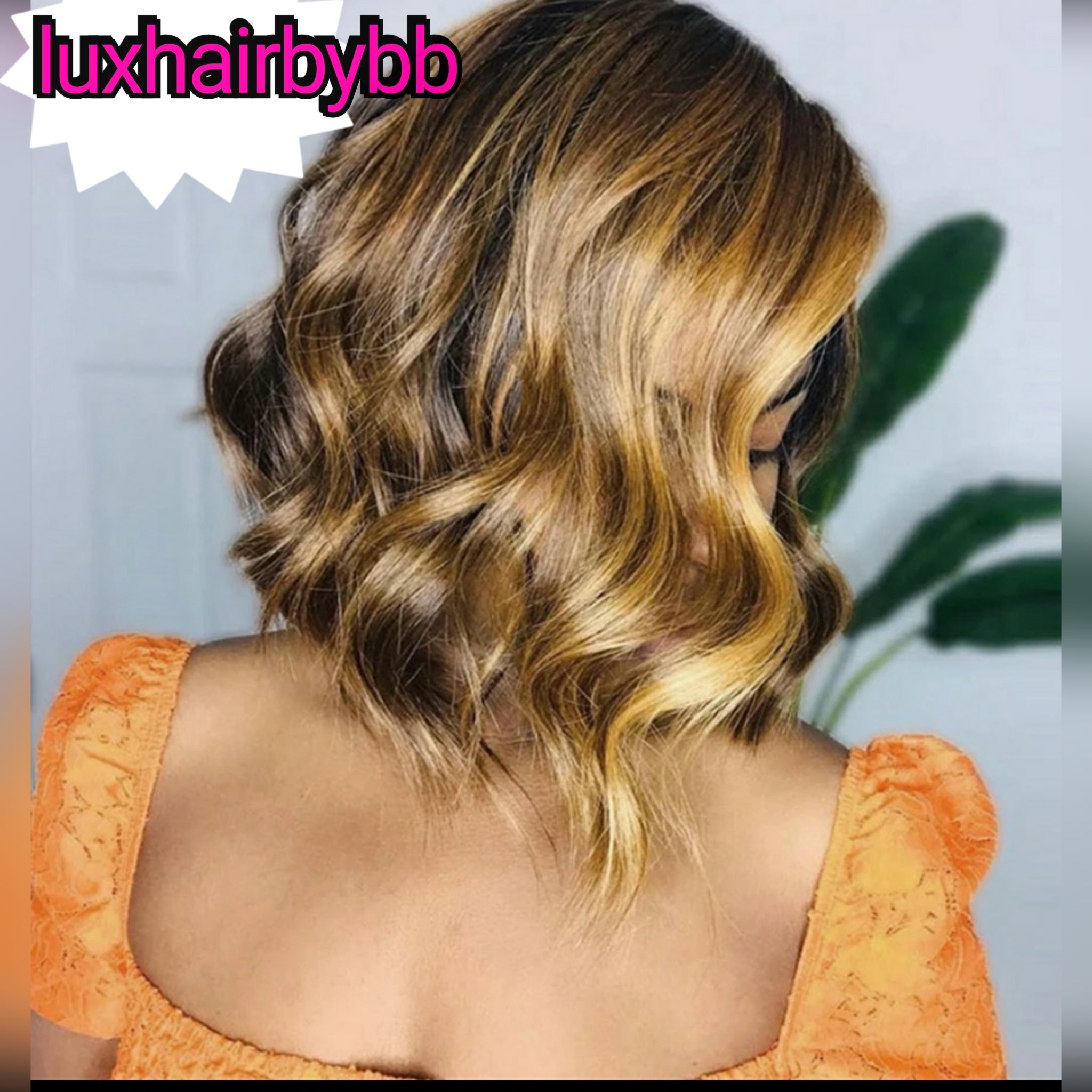 Colored 4x4 Closure wig , human Hair 1b/30, honey blonde lace front wigs, Pre puckled with baby hair pixie cut bob wig